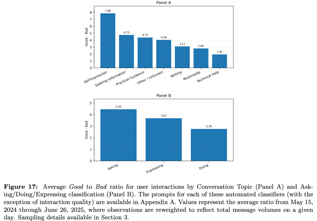OpenAI研究采用了更科学的方法,即基于内部对话数据,并使用自动化分类结合隐私保护技术展开分析。