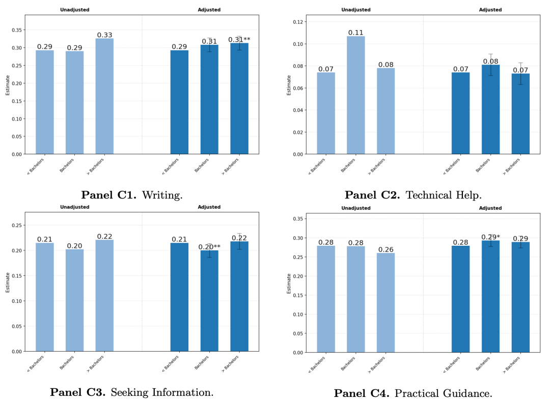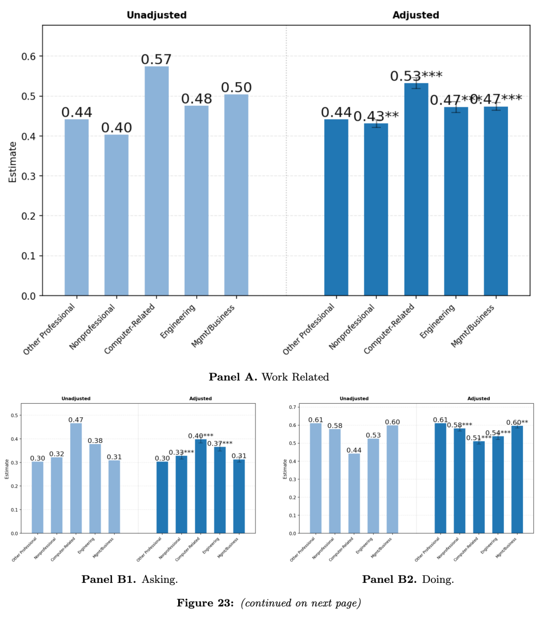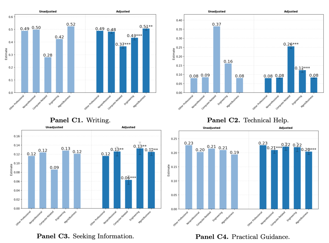 尤其是,技术类岗位,比如计算机、工程,更倾向于向ChatGPT提问,而非执行具体操作。