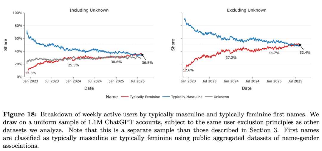 值得一提的是,ChatGPT早期的性别差距显著缩小。