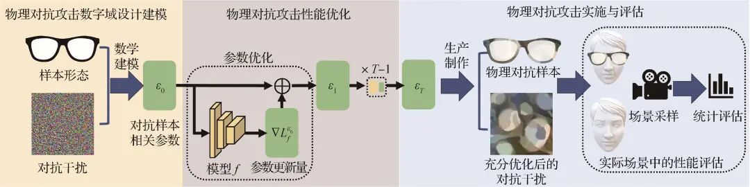 论文依据物理对抗攻击设计的一般性流程,全面梳理了计算机视觉领域中百余篇物理对抗攻击技术研究在设计建模、性能优化与实施评估上的创新与优势。