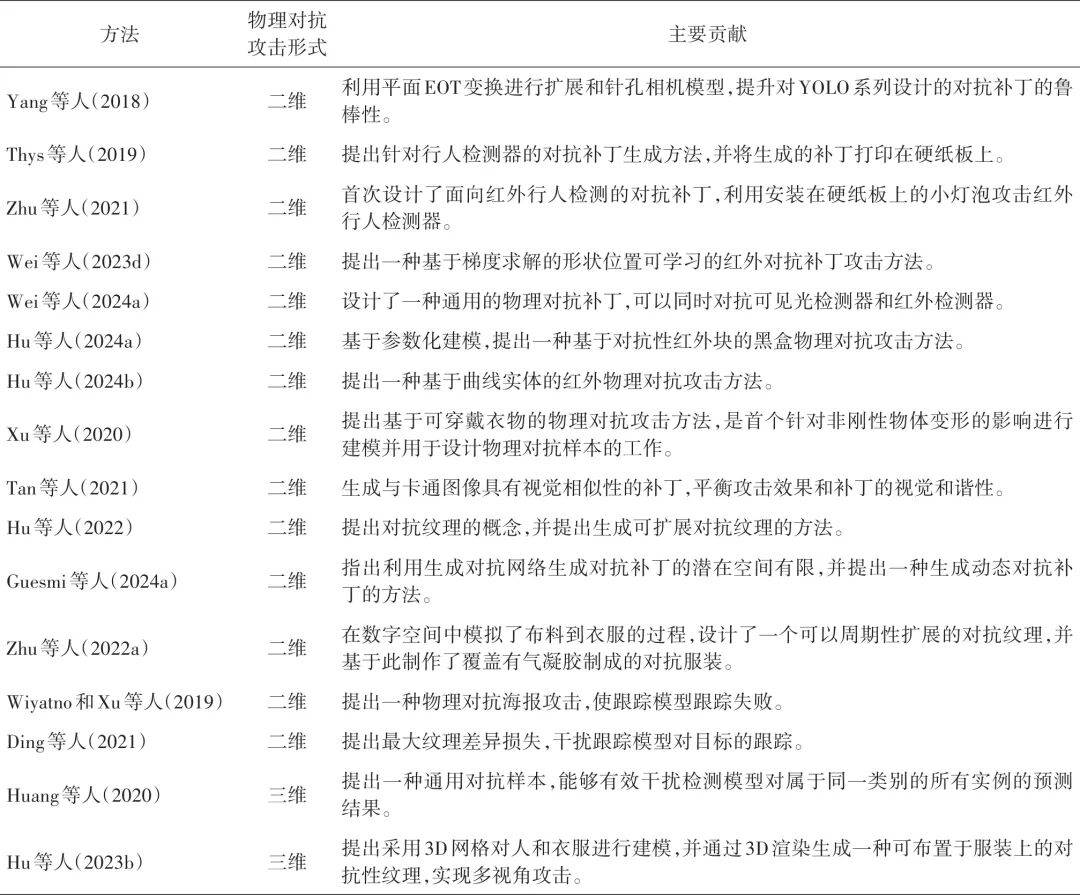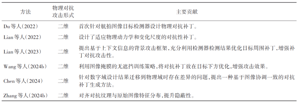 表 5 针对遥感场景的物理对抗攻击方法描述