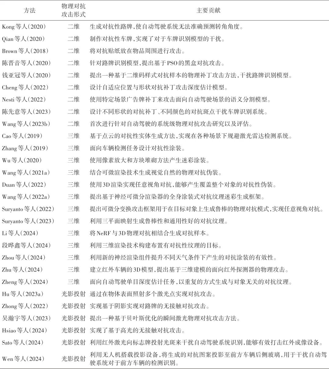 表 3 针对自动驾驶的物理对抗攻击方法描述