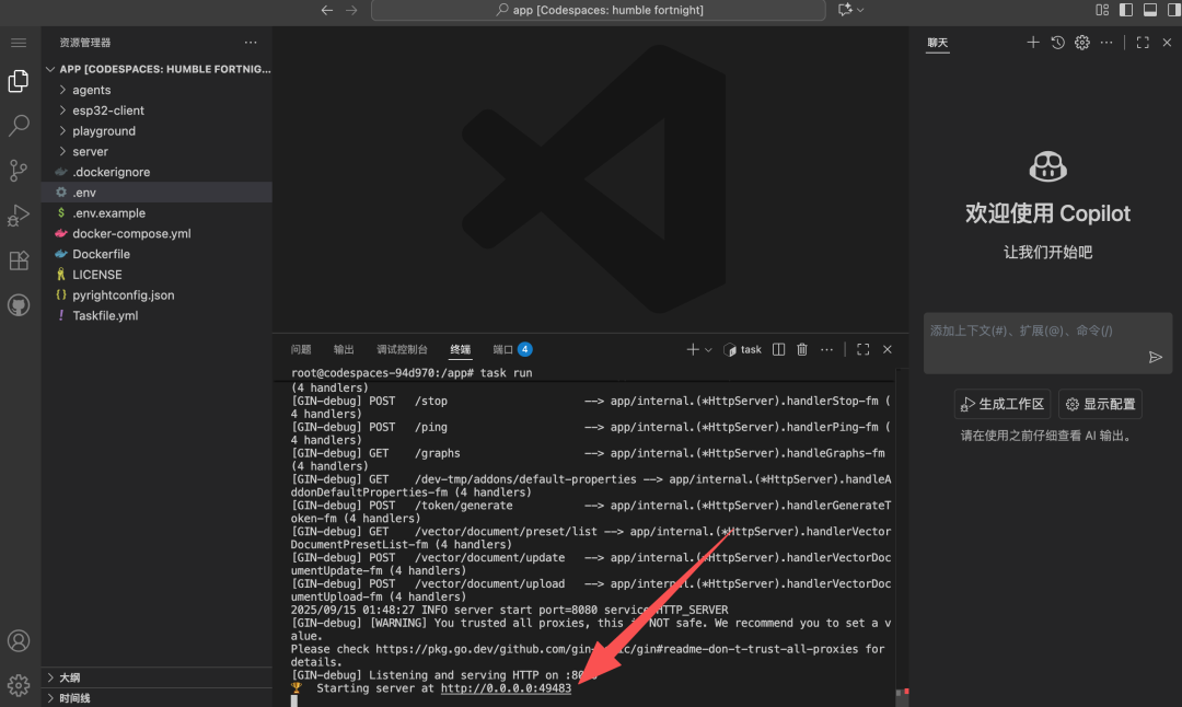 成功启动后,终端上会提供一个服务器地址,在浏览器上访问: