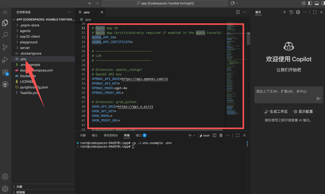 填写完相关密钥配置后,再执行如下命令构建智能体: