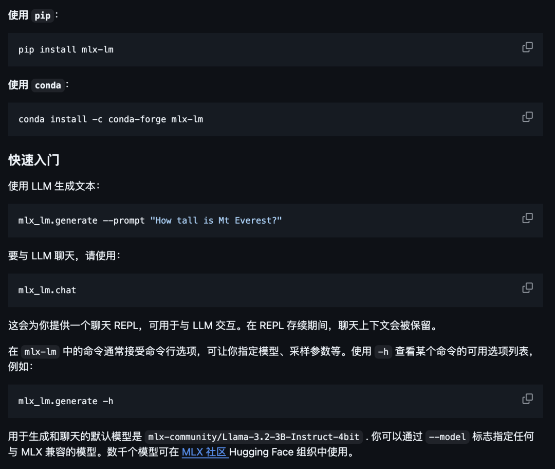 mlx-lm 是一个专为苹果芯片设计的开源项目,让用户能轻松地在 Mac 电脑上运行各种大语言模型。