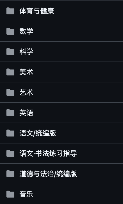 比如小学中的课程,数学、美术、科学、英语、语文,甚至体育与健康、艺术、书法、音乐等等 10 大课程配套的教学材料都有。07