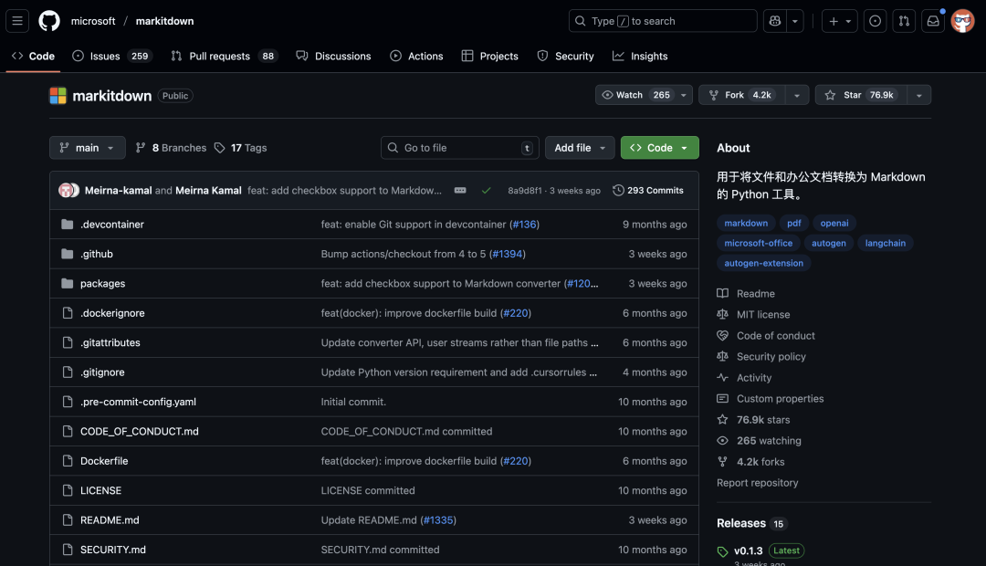 MarkItDown 用于将各种常见格式的文档转换为 Markdown 格式。