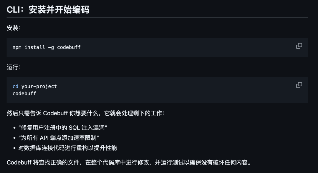 Codebuff 也是一个基于命令行的 AI 编程助手。