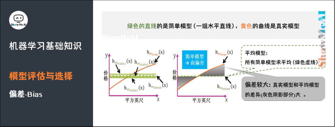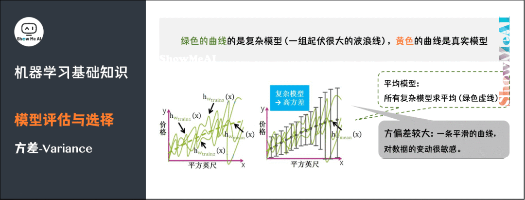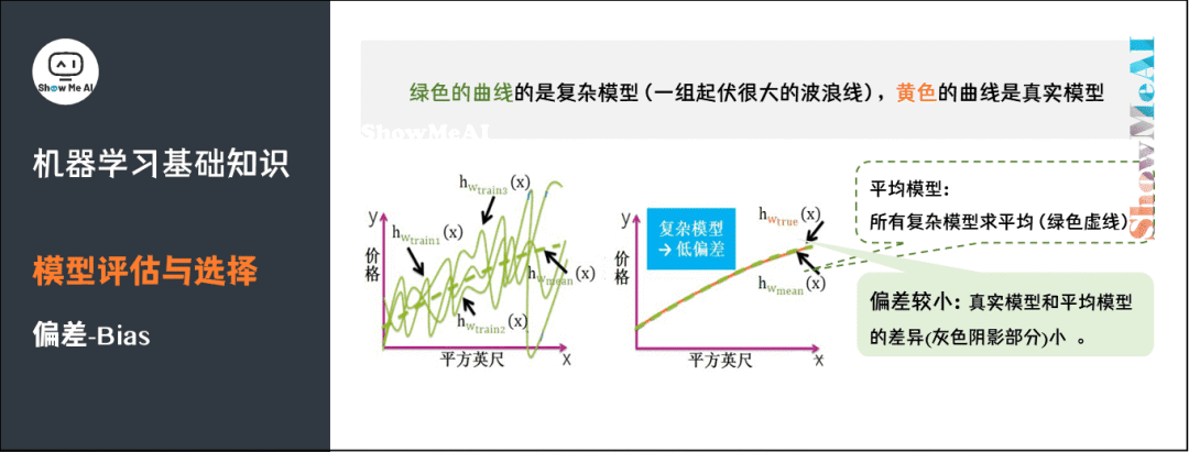 过拟合,指的是模型在训练集上表现的很好,但是在交叉验证集合测试集上表现一般,也就是说模型对未知样本的预测表现一般,泛化(Generalization)能力较差。如何防止过拟合呢?一般的方法有Early Stopping、数据集扩增(Data Augmentation)、正则化、Dropout等。正则化:指的是在目标函数后面添加一个正则化项,一般有L1正则化与L2正则化。L1正则是基于L1范数,即在目标函数后面加上参数的L1范数和项,即参数绝对值和与参数的积项。数据集扩增:即需要得到更多的符合要求的数据,即和已有的数据是独立同分布的,或者近似独立同分布的。一般方法有:从数据源头采集更多数据、复制原有数据并加上随机噪声、重采样、根据当前数据集估计数据分布参数,使用该分布产生更多数据等。DropOut:通过修改神经网络本身结构来实现的。偏差(Bias),它通常指的是模型拟合的偏差程度。给定无数套训练集而期望拟合出来的模型就是平均模型。偏差就是真实模型和平均模型的差异。简单模型是一组直线,平均之后得到的平均模型是一条直的虚线,与真实模型曲线的差别较大(灰色阴影部分较大)。因此,简单模型通常高偏差。复杂模型是一组起伏很大波浪线,平均之后最大值和最小组都会相互抵消,和真实模型的曲线差别较小,因此复杂模型通常低偏差(见黄色曲线和绿色虚线几乎重合)。方差(Variance),它通常指的是模型的平稳程度(简单程度)。简单模型的对应的函数如出一辙,都是水平直线,而且平均模型的函数也是一条水平直线,因此简单模型的方差很小,并且对数据的变动不敏感。复杂模型的对应的函数千奇百怪,毫无任何规则,但平均模型的函数也是一条平滑的曲线,因此复杂模型的方差很大,并且对数据的变动很敏感。性能度量