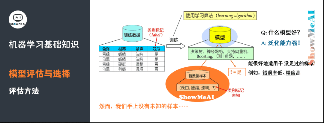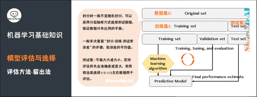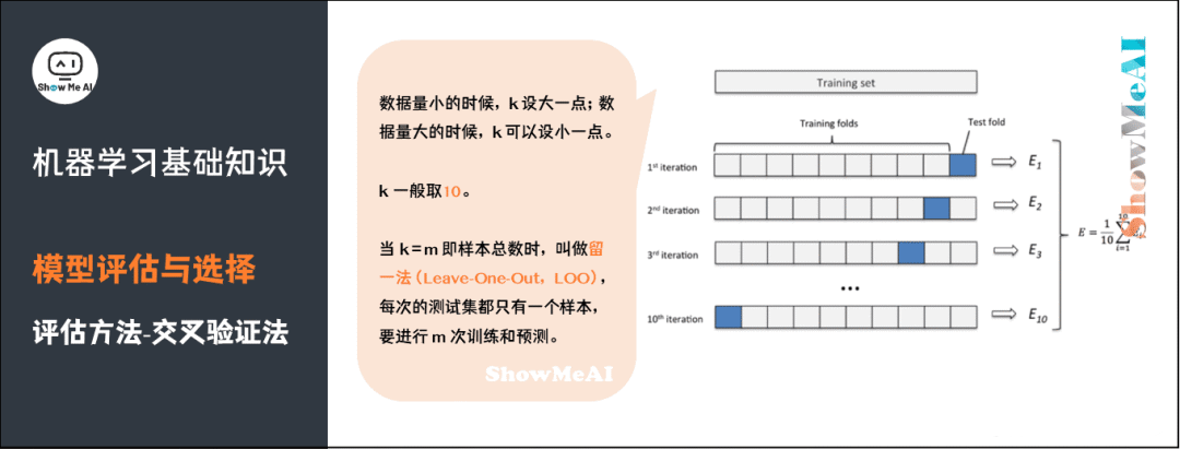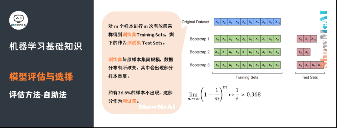 (Area Under ROC Curve)是ROC曲线下面积,代表了样本预测的排序质量。从一个比较高的角度来认识AUC:仍然以异常用户的识别为例,高的AUC值意味着,模型在能够尽可能多地识别异常用户的情况下,仍然对正常用户有着一个较低的误判率(不会因为为了识别异常用户,而将大量的正常用户给误判为异常。我们手上没有未知的样本,如何可靠地评估?关键是要获得可靠的「测试集数据」(Test Set),即测试集(用于评估)应该与训练集(用于模型学习)「互斥」。常见的评估方法有:留出法(Hold-out)、交叉验证法( Cross Validation)、自助法(Bootstrap)。留出法(Hold-out)是机器学习中最常见的评估方法之一,它会从训练数据中保留出验证样本集,这部分数据不用于训练,而用于模型评估。机器学习中,另外一种比较常见的评估方法是交叉验证法(Cross Validation)。k 折交叉验证对 k 个不同分组训练的结果进行平均来减少方差,因此模型的性能对数据的划分就不那么敏感,对数据的使用也会更充分,模型评估结果更加稳定。自助法(Bootstrap)是一种用小样本估计总体值的一种非参数方法,在进化和生态学研究中应用十分广泛。Bootstrap通过有放回抽样生成大量的伪样本,通过对伪样本进行计算,获得统计量的分布,从而估计数据的整体分布。我们希望找到对当前问题表达能力好,且模型复杂度较低的模型:- 表达力好的模型,可以较好地对训练数据中的规律和模式进行学习;