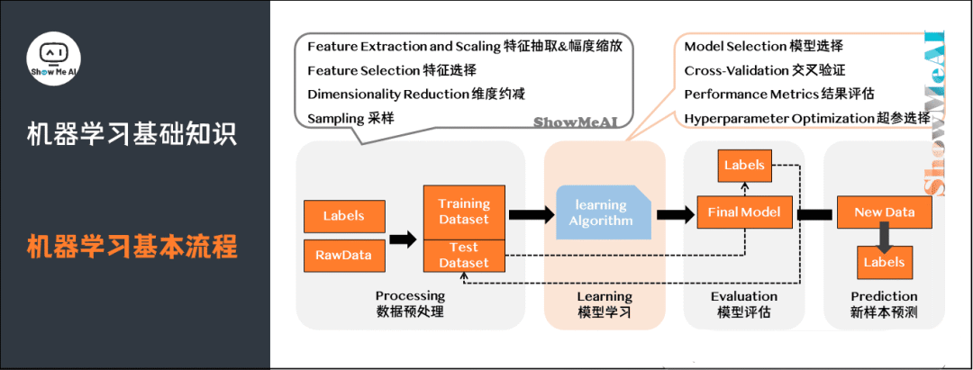 机器学习工作流(WorkFlow)包含数据预处理(Processing)、模型学习(Learning)、模型评估(Evaluation)、新样本预测(Prediction)几个步骤。数据预处理:输入(未处理的数据 + 标签)→处理过程(特征处理+幅度缩放、特征选择、维度约减、采样)→输出(测试集 + 训练集)。模型学习:模型选择、交叉验证、结果评估、超参选择。作为一套数据驱动的方法,机器学习已广泛应用于数据挖掘、计算机视觉、自然语言处理、生物特征识别、搜索引擎、医学诊断、检测信用卡欺诈、证券市场分析、DNA序列测序、语音和手写识别和机器人等领域。智能医疗:智能假肢、外骨骼、医疗保健机器人、手术机器人、智能健康管理等。人脸识别:门禁系统、考勤系统、人脸识别防盗门、电子护照及身份证,还可以利用人脸识别系统和网络,在全国范围内搜捕逃犯。机器人的控制领域:工业机器人、机械臂、多足机器人、扫地机器人、无人机等。监督学习(Supervised Learning):训练集有标记信息,学习方式有分类和回归。无监督学习(Unsupervised Learning):训练集没有标记信息,学习方式有聚类和降维。强化学习(Reinforcement Learning):有延迟和稀疏的反馈标签的学习方式。属性空间/样本空间/输入空间X:由全部属性张成的空间。