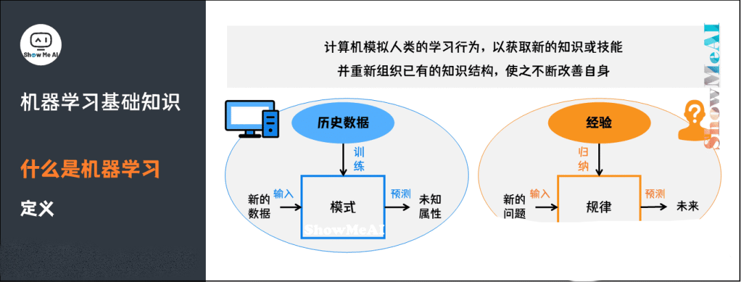 机器学习算法从数据中自动分析获得规律,并利用规律对未知数据进行预测。