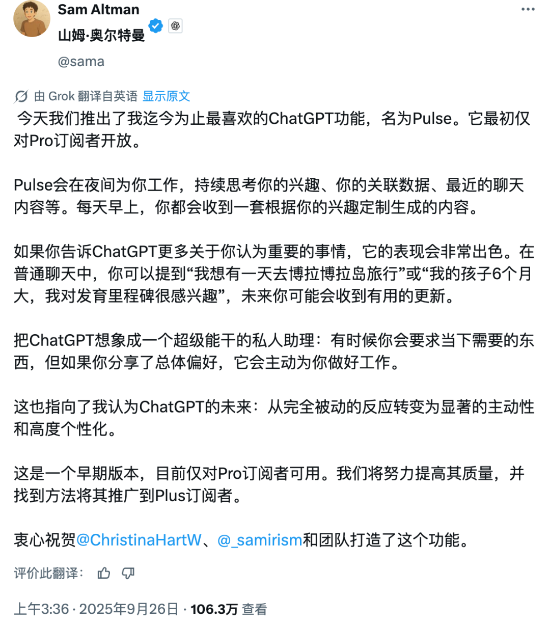 Pulse 其实是 OpenAI 向 AI 智能体(Agent)方向迈出的第一步。