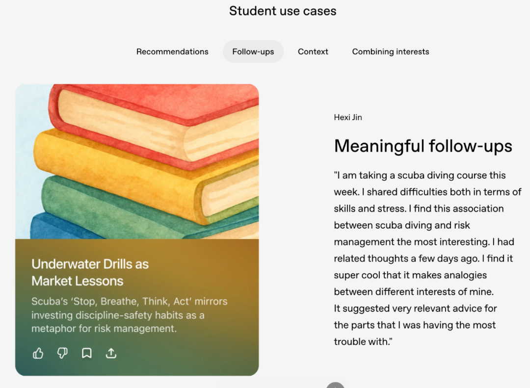 很多学生刚开始觉得 Pulse 一般般,但当他们开始主动告诉 ChatGPT 想看什么内容后,立马感受到了它的威力。