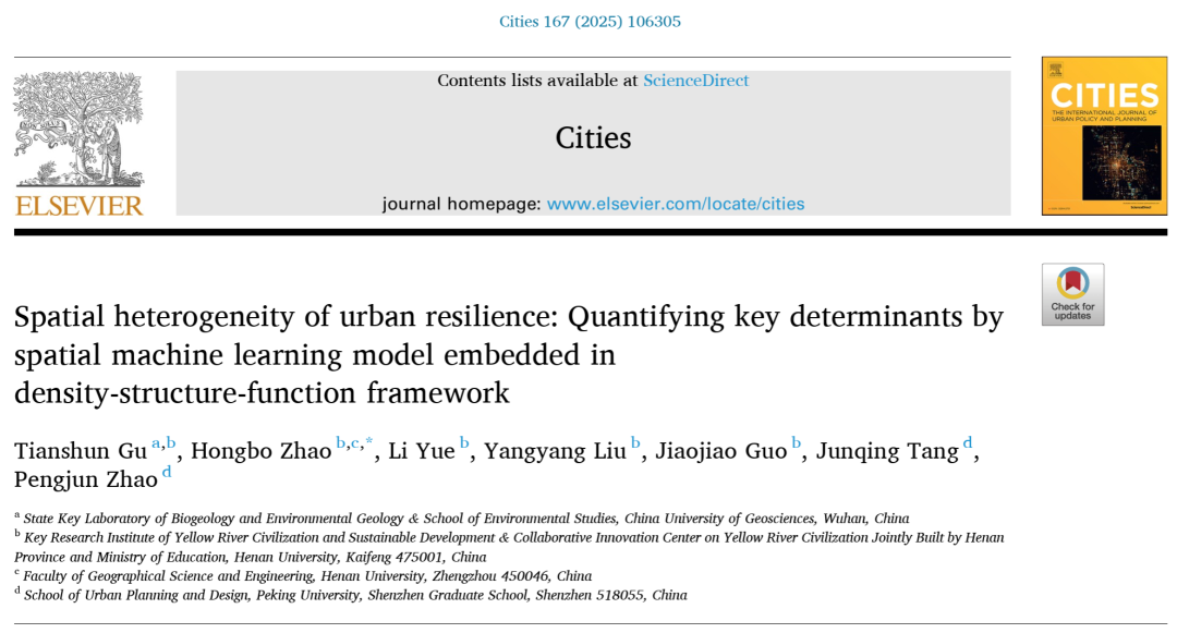 这篇文章《Spatial heterogeneity of urban resilience: Quantifying key determinants by spatial machine learning model embedded in density-structure-function framework》由Tianshun Gu等人撰写,发表于《Cities》第167期(2025年),旨在探索和构建城市韧性评估框架,以增强城市系统应对灾害风险的能力。以下是对文章的主要内容进行的总结: