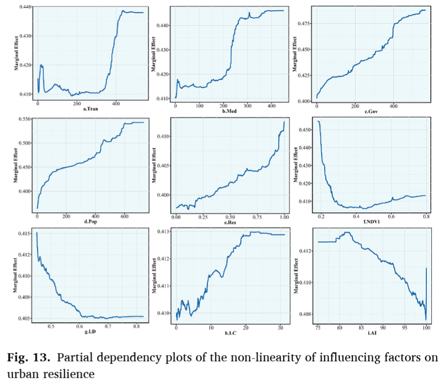 数据来源和精度:虽然研究使用了多源地理数据,但数据的全面性和精度仍有提升空间。未来研究可以进一步整合更多类型的数据,如居民调查数据、社交媒体数据等,以更全面地反映城市韧性的社会维度。