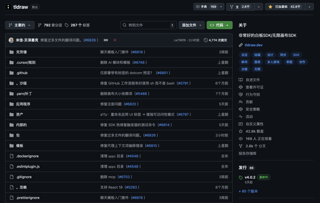 tldraw 是一款免费开源、支持多人实时协作的在线数字白板工具,适合绘图、图表制作和团队 brainstorming。目前在 GitHub 上已经获得 4 万多 Star 了。你可以把它想象成一块可以无限扩展的数字草稿纸,既简单易用,又蕴含强大的能力使用起来特别简单,几行代码就能嵌入你的应用。