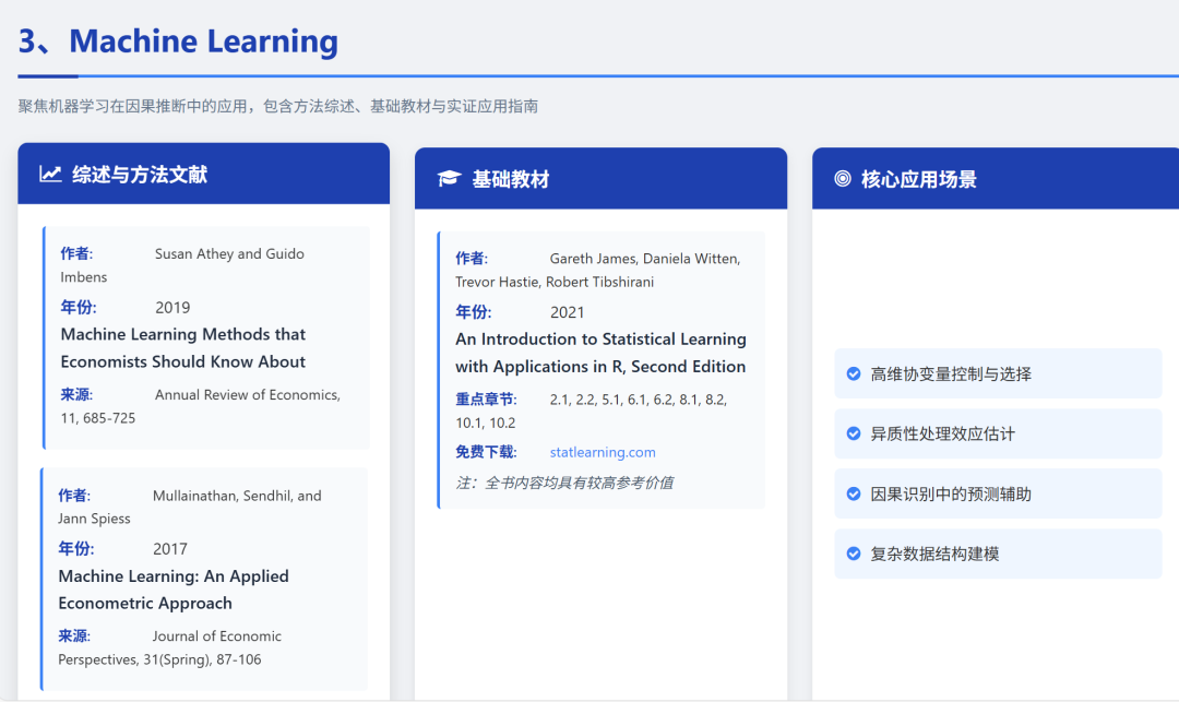 Susan Athey and Guido Imbens (2019), Machine Learning Methods that Economists Should Know About, Annual Review of Economics, 11, 685-725.