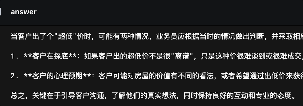MindsDB会自动完成创建嵌入模型、创建向量库、利用嵌入模型生成向量、将向量与Metadata等保存到向量库这一系列动作。在知识库创建完成后,你可以不带任何条件的查看其数据:select * from my_sales_question_kb