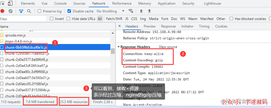 - 第一张经过压缩:finish时间为2.36s,transferred为7.6MB