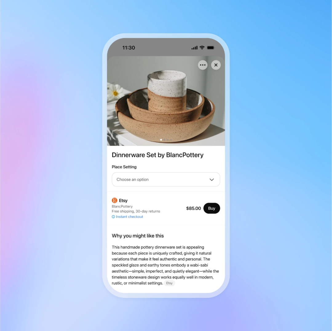 首先需要提醒,目前这个功能仅面向在Etsy下单的美国ChatGPT Pro、Plus和Free登录用户推出。