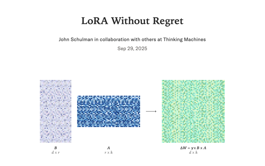 John Schulman和Thingking Machines团队给出了肯定答案:只要抓准关键细节,LoRA不仅能和FullFT拥有相同的样本效率,还能达到一样的最终性能。