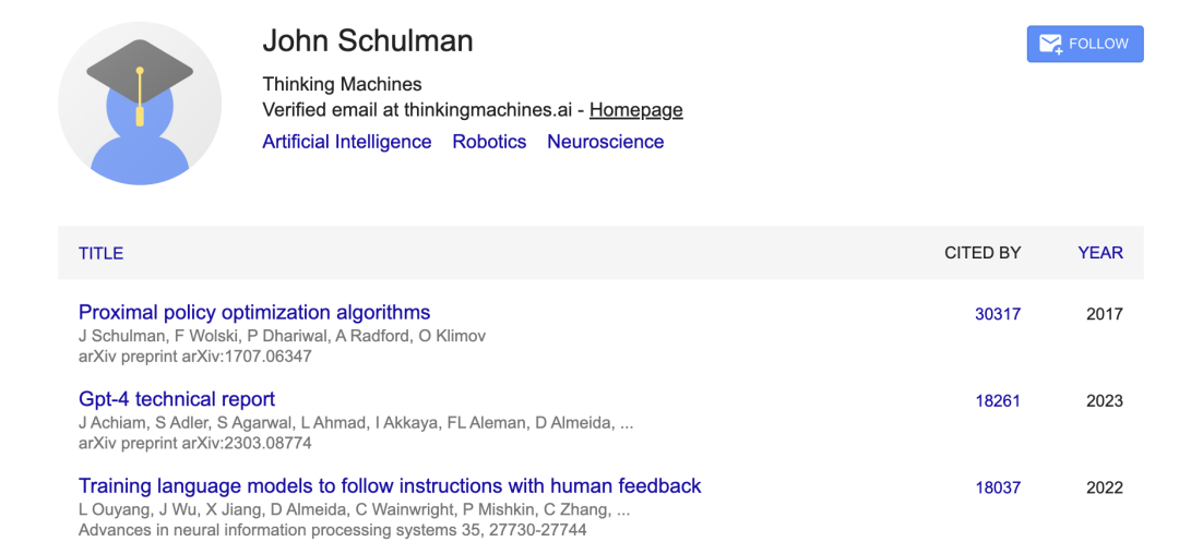 Google Scholar页面显示,John Schulman的学术引用将近14万。