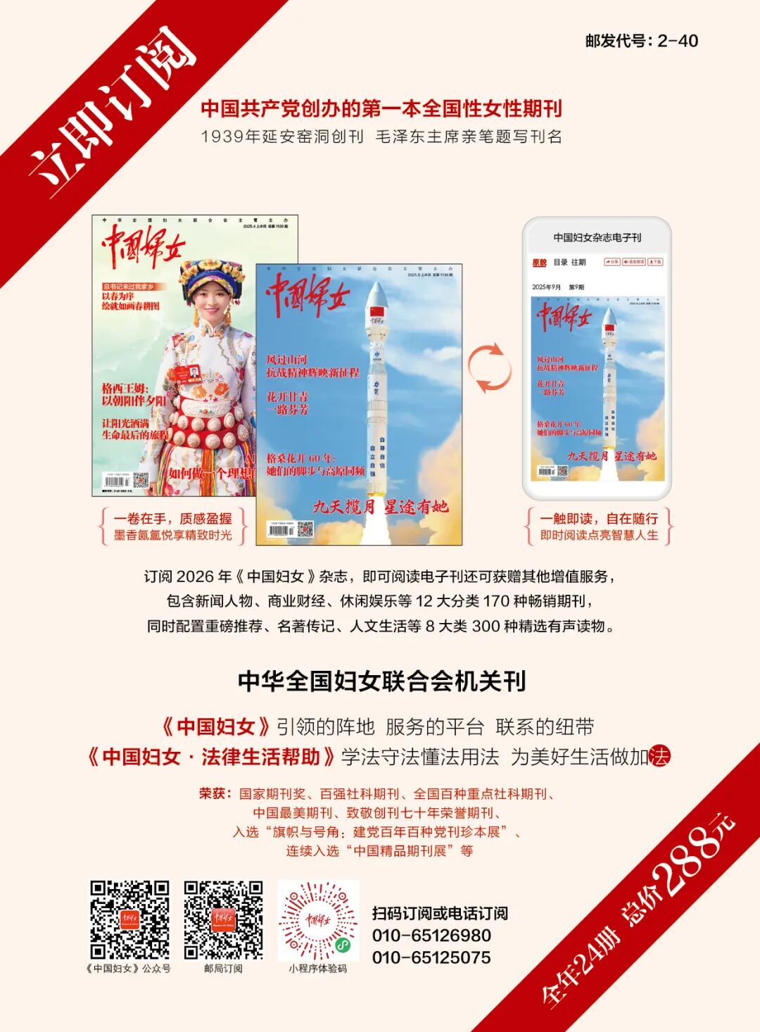 4、电话邮件订阅。与中国妇女杂志社出版发行部联系订阅。