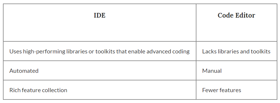 IDE 和代码编辑器的显著特征 IDE 和代码编辑器有哪些共同优点?它们均可帮助开发者: