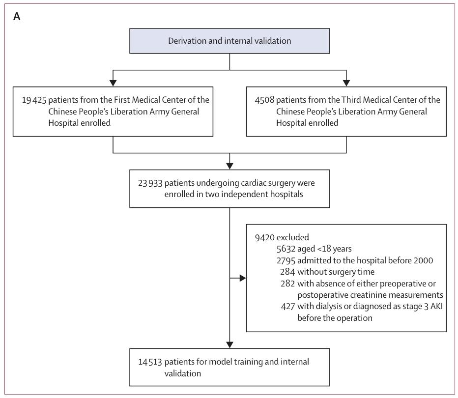 - 模型开发与内部验证:连续纳入2000年1月1日至2022年12月31日期间,中国北京中国人民解放军总医院第一医学中心和第三医学中心的符合条件患者。