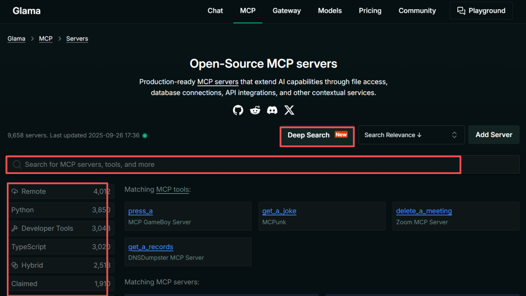 更绝的是,网站还新增了深度搜索功能,直接描述希望完成的任务,它会自动帮你匹配合适的MCP服务器。