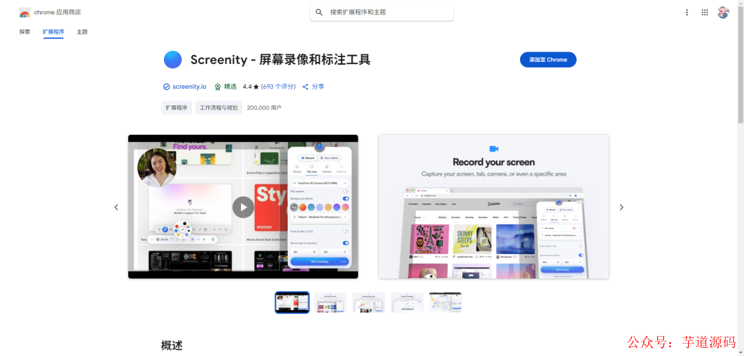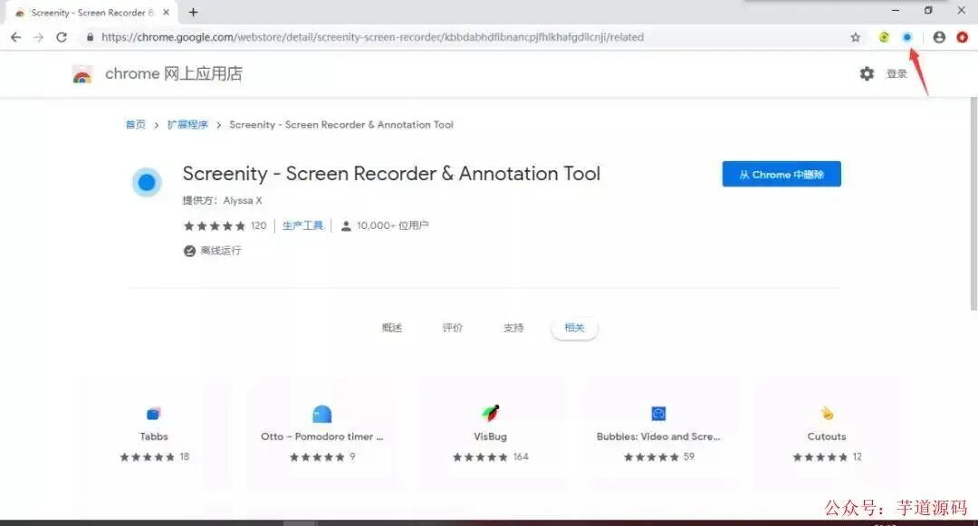安装成功后,在浏览器扩展栏里多出来一个蓝色小圆圈,点击就能进行录屏了: