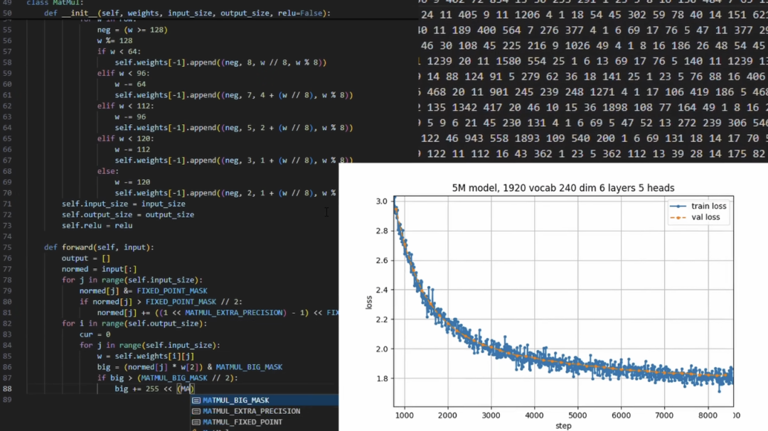 在具体的数据上,模型一共有5087280(约500万)个参数,在Python中用TinyChat数据集进行训练。