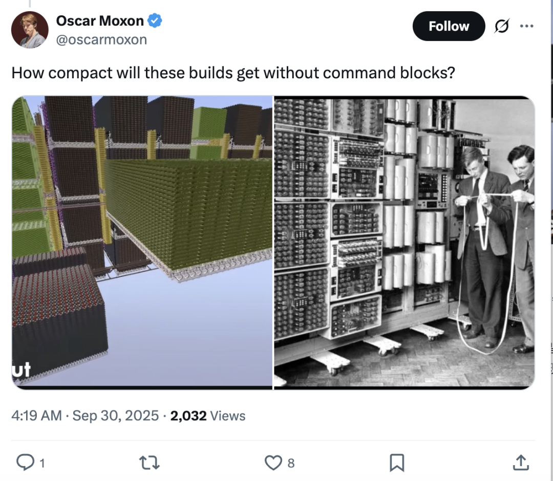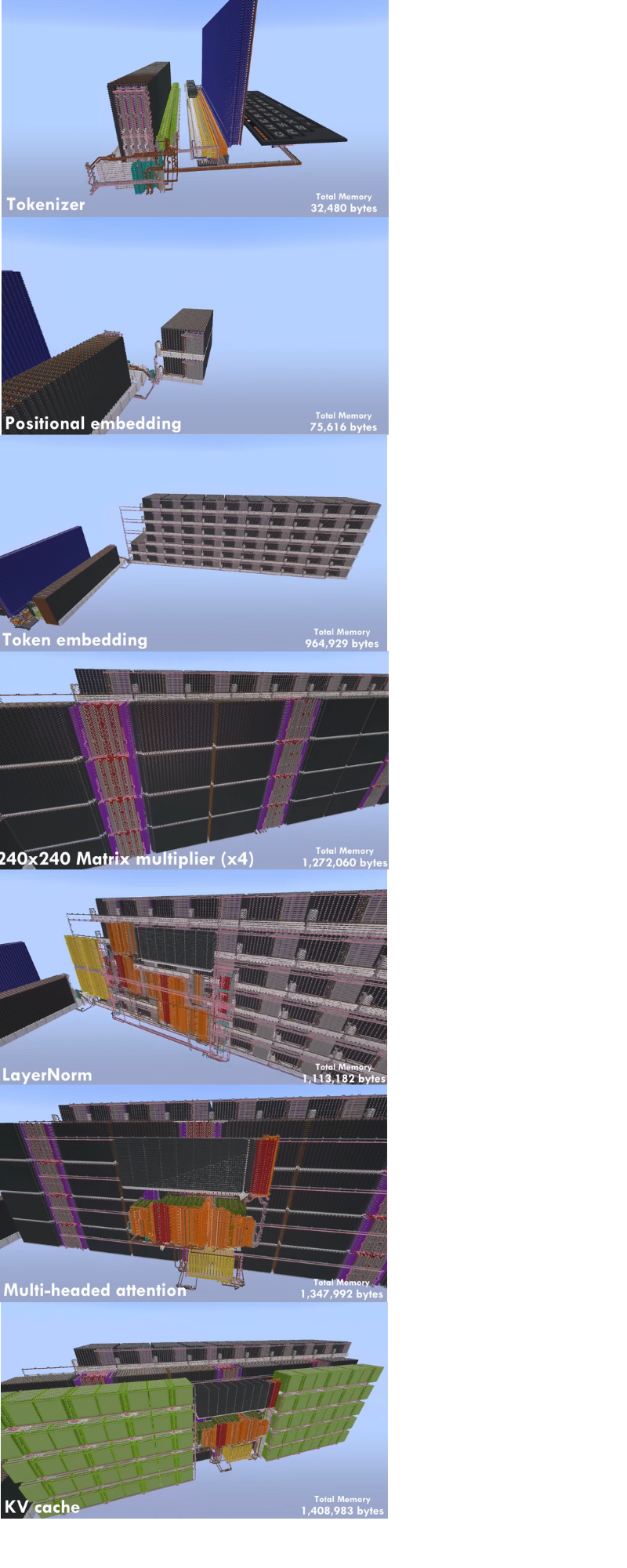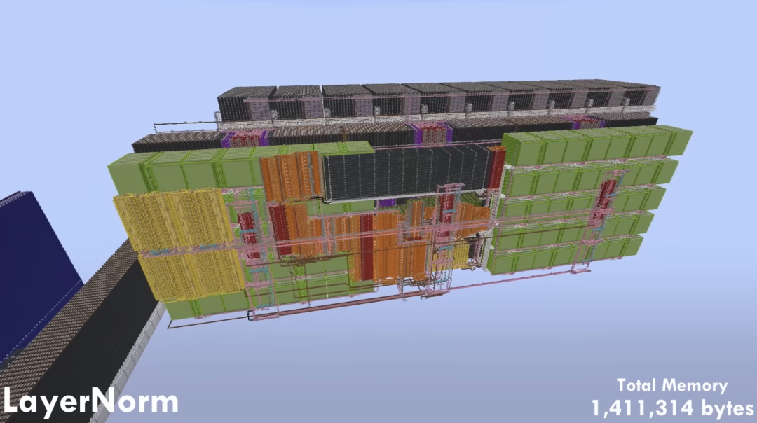 而且手搓这么一个GPT竟然没用指令集,完全是用红石电路(0/1)和存储单元手搓出来的。