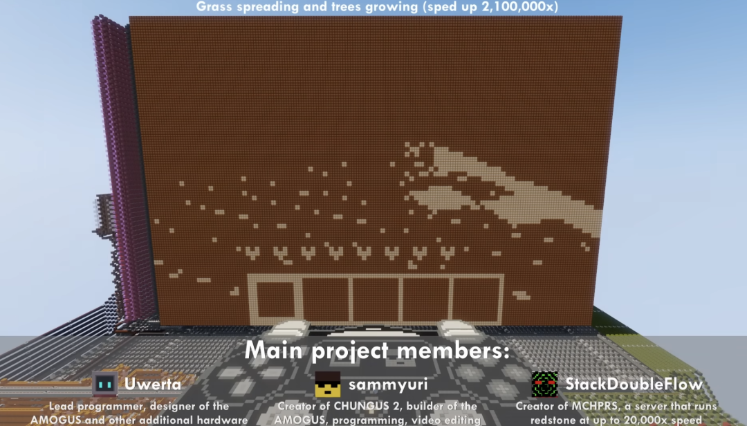 整个建造占据了1020×260×1656方块的体积,所以视频里有些地方会有些变形。
