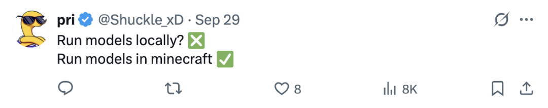 不过,也有网友表示,建造模型固然很难,但要是能在《我的世界》里训练模型可就真太牛了。