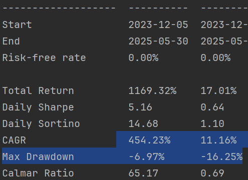原创内容第1017篇,专注AGI+,AI量化投资、个人成长与财富自由。今日策略:年化454%,回撤6.97%,卡玛比65.17from backtrader_engine import Task, Engine
