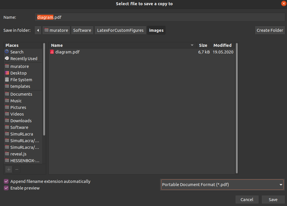 当你在 Inkscape 中完成图形设计后,选择“另存为副本”,格式选择 PDF,并在弹出的选项中勾选“