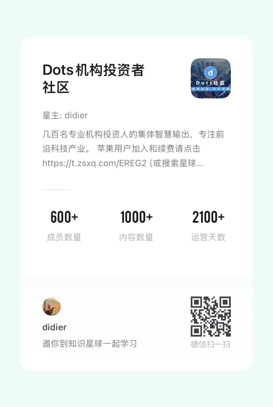 欢迎加入Dots机构投资者社区的知识星球,利用集体智慧输出,帮你认知这个世界,规避风险,获取回报!知识星球号: 22136749