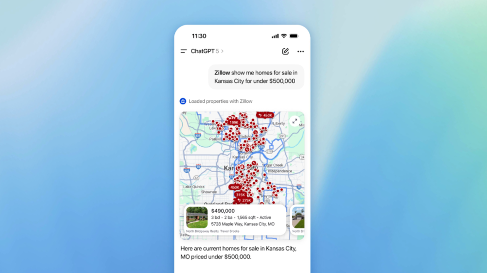 ChatGPT还会在对话内容相关时主动推荐应用。例如,当你在讨论买房时,ChatGPT可能会自动推荐Zillow应用,让你直接在对话中通过交互式地图浏览符合预算的房源。