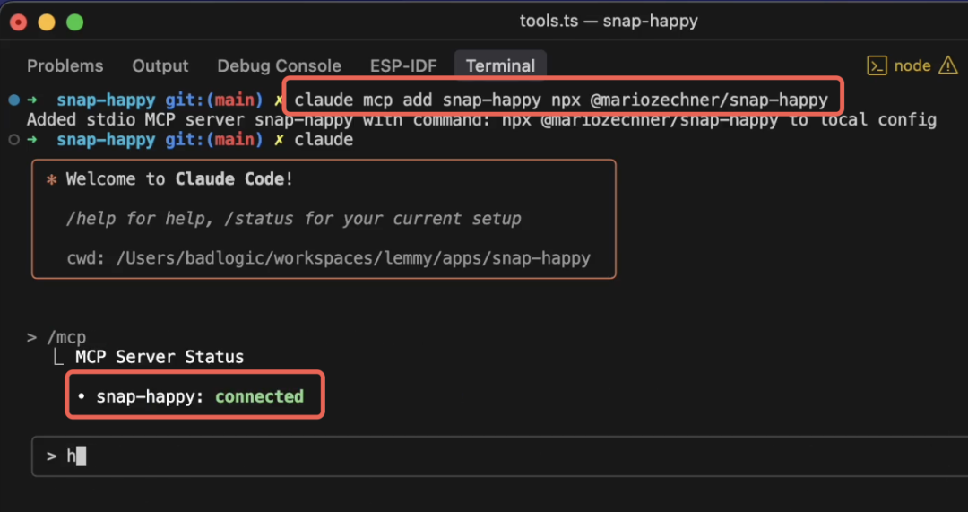 claude mcp add snap-happy npx @mariozechner/snap-happy