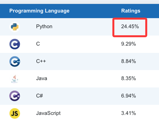 24.45% 的数据也是一骑绝尘了,所以不是你不行,是 Python 太香: