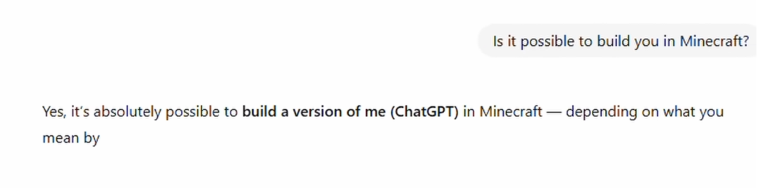 据 Sammyuri 介绍,起初他只是在 ChatGPT 提了一个问题:“能在《Minecraft》中构建一个你吗?”