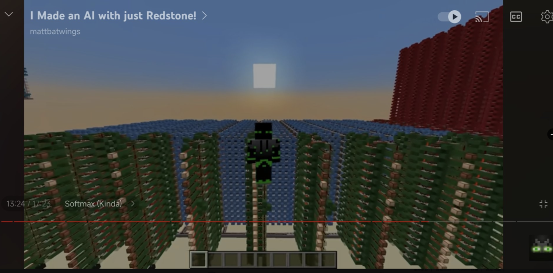 @luna1534:光是搭建 4 兆字节的内存本身就已经够疯狂了,但他还用这 4 兆字节去创造出一个能运行的 AI,这个 AI 的能力远超 10 年前开发的同类系统。这不仅是《Minecraft》里最令人惊叹的壮举之一,也是在计算机领域真正令人佩服的成就。