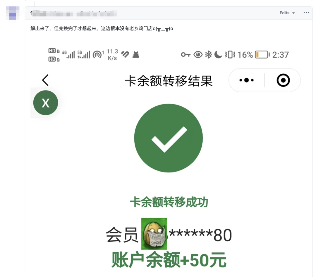 发卡方式真的过于直白了鸭鸭刚刚查看的时候发现老乡鸡又在 Issue 里发了一次代金券,这次是面向程序员同学的福利。不少同学已经解出来了,目前卡里余额已经领空,不过感兴趣的同学也可以去试试。