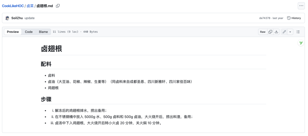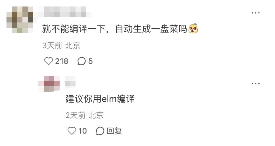 项目正式名叫《像老乡鸡那样做饭》。其中分了:主食、凉拌、卤菜、早餐、汤、炒菜……等等类目。文字教程大部分来自老乡鸡出品的《老乡鸡菜品溯源报告》。🔥的原因大家懂得都懂,菜谱对留子也是友好度拉满。当然,以下面这位同学的烹饪水平,可能期待老乡鸡开到美国更靠谱一些。至于建议编译自动生成一盘菜的同学,建议还是换一种编译方式。