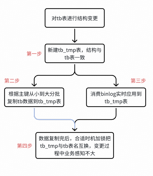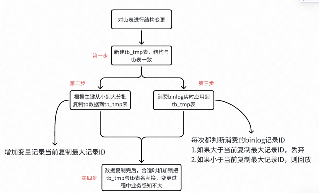 在『结构变更机制』介绍中,我们发现这种变更机制它有一个特点,就是【第三步】会导致新插入的记录可能会先写入到表中(主键 ID 大的记录先写入到了表),然后【第二步】中复制数据后写入到表中(主键 ID 小的记录)。这种写入特性叠加单行记录过大的时候(业务表单行记录大小 5k 左右),会碰到 MySQL 页分裂的一个瑕疵(暂且称之为瑕疵,或许是一个 Bug),导致了一个页只存储了 1 条记录(16k 的页只存储了 5k,浪费 2/3 空间),放大了存储问题。