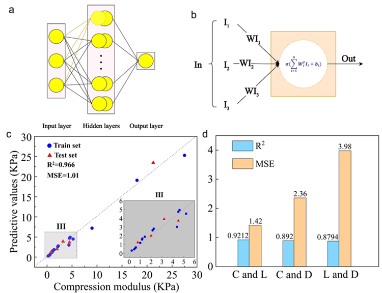 图1. 通过人工神经网络的机器学习模型预测机械性能,以及MXene/纳米纤维素复合气凝胶的结构。