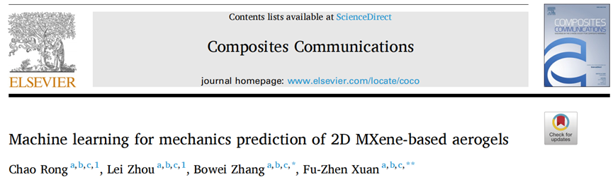 Chao Rong#, Lei Zhou#, Bowei Zhang* & Fu-Zhen Xuan*. Machine learning for mechanics prediction of 2D MXene-based aerogels. Composites Communications 2023, 38, 101474.