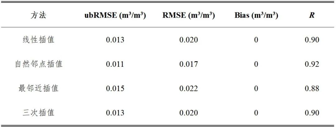 表2 验证格网中插值法填补的ESA CCI土壤水分相对于原始ESA CCI土壤水分的误差指标统计结果